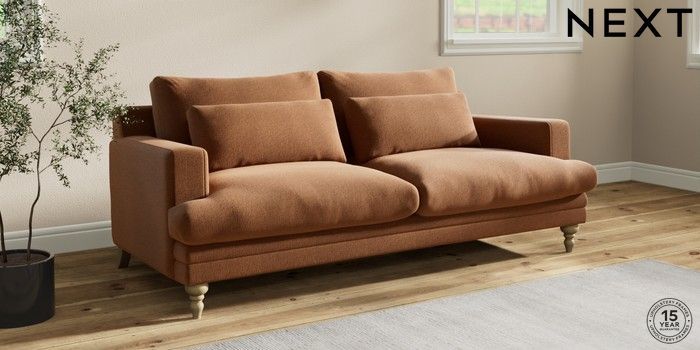 7.2.10 Hutton Deep Relaxed Sit 3 Seater Sofa Ripple Chenille Mid Rust Brown Country Turned - Light | Made Click here to use our website with more accessibility support, for example screen readers