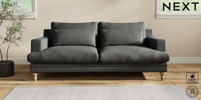 7.2.10 Hutton Deep Relaxed Sit 3 Seater Sofa Tweedy Blend Easy Clean Charcoal Grey Country Turned - Light | Made Click here to use our website with more accessibility support, for example screen readers