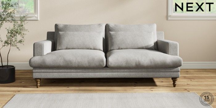 7.2.10 Hutton Deep Relaxed Sit 3 Seater Sofa Tweedy Chenille Mid Grey Country Turned - Mid | Made Click here to use our website with more accessibility support, for example screen readers