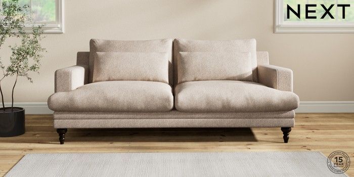 7.2.10 Hutton Deep Relaxed Sit 3 Seater Sofa Tweedy Chenille Mid Natural Country Turned - Dark | Made Click here to use our website with more accessibility support, for example screen readers