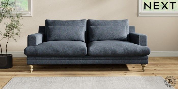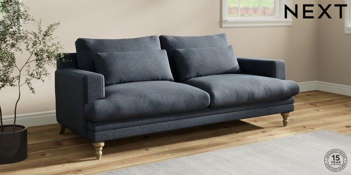 7.2.10 Hutton Deep Relaxed Sit 3 Seater Sofa Tweedy Chenille Navy Blue Country Turned - Light | Made Click here to use our website with more accessibility support, for example screen readers