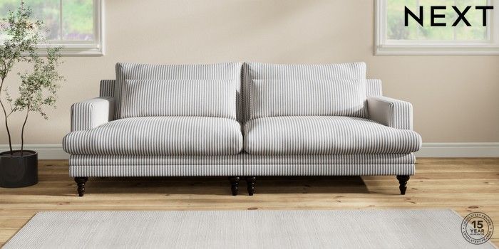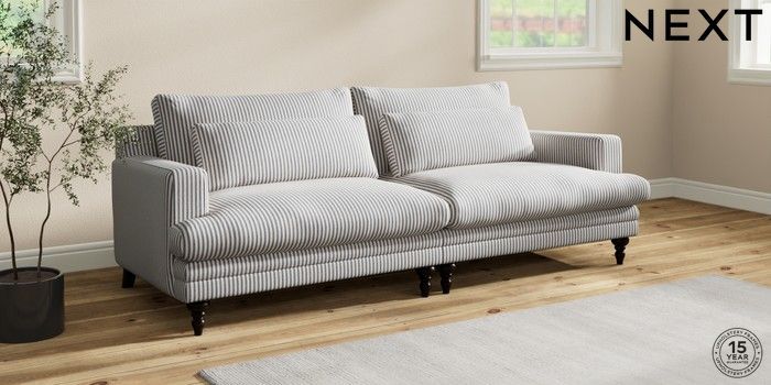 7.2.10 Hutton Deep Relaxed Sit 4 Seater Sofa Chenille Stripe Slate Blue Country Turned - Dark | Made Click here to use our website with more accessibility support, for example screen readers