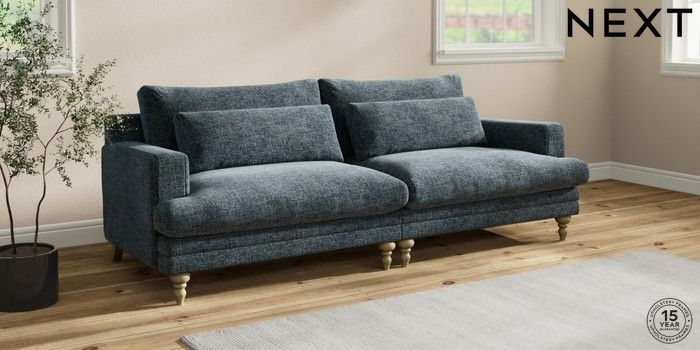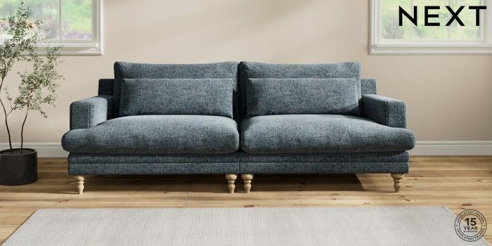 7.2.10 Hutton Deep Relaxed Sit 4 Seater Sofa Chunky Chenille Dark Navy Blue Country Turned - Light | Made Click here to use our website with more accessibility support, for example screen readers