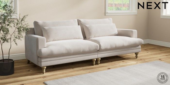 7.2.10 Hutton Deep Relaxed Sit 4 Seater Sofa Chunky Chenille Oyster Country Turned - Light | Made Click here to use our website with more accessibility support, for example screen readers