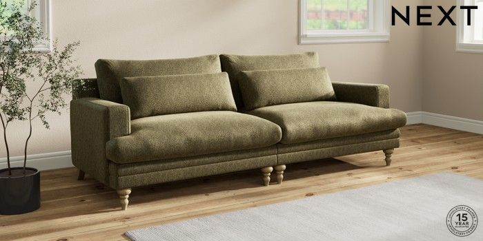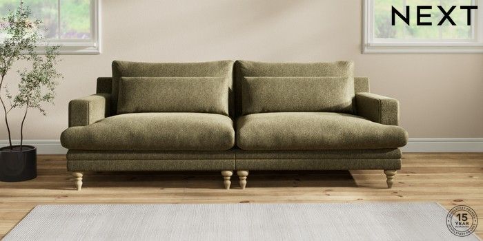 7.2.10 Hutton Deep Relaxed Sit 4 Seater Sofa Cotswold Chenille Dark Green Country Turned - Light | Made Click here to use our website with more accessibility support, for example screen readers