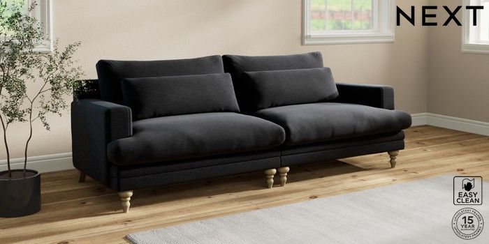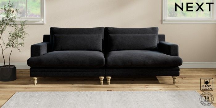 7.2.10 Hutton Deep Relaxed Sit 4 Seater Sofa Fine Chenille Easy Clean Black Country Turned - Light | Made Click here to use our website with more accessibility support, for example screen readers