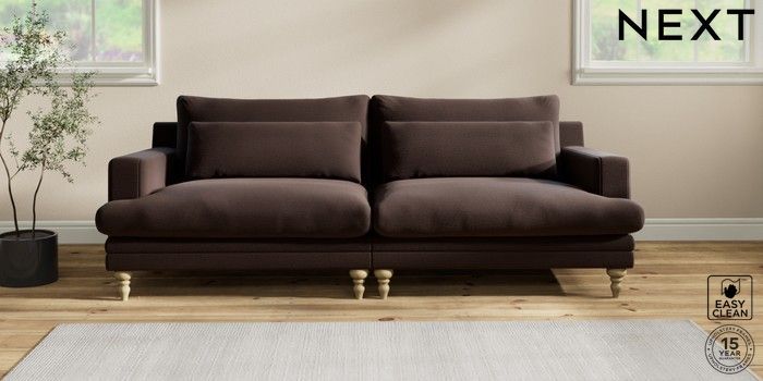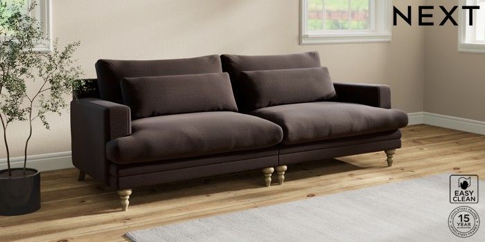 7.2.10 Hutton Deep Relaxed Sit 4 Seater Sofa Fine Chenille Easy Clean Chocolate Brown Country Turned - Light | Made Click here to use our website with more accessibility support, for example screen readers