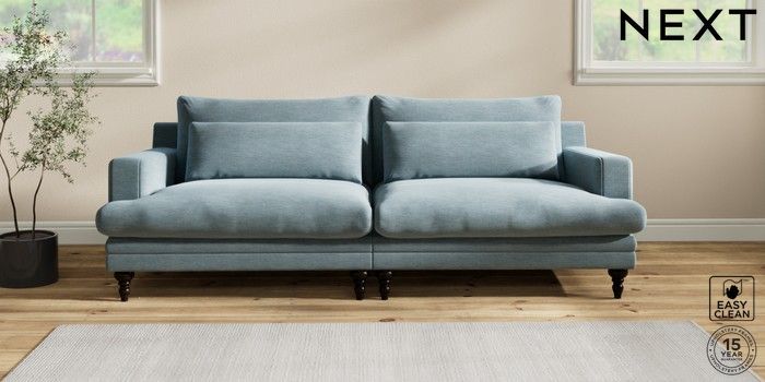 7.2.10 Hutton Deep Relaxed Sit 4 Seater Sofa Fine Chenille Easy Clean Mid Blue Country Turned - Dark | Made Click here to use our website with more accessibility support, for example screen readers