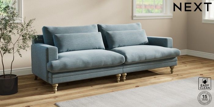 7.2.10 Hutton Deep Relaxed Sit 4 Seater Sofa Fine Chenille Easy Clean Mid Blue Country Turned - Light | Made Click here to use our website with more accessibility support, for example screen readers