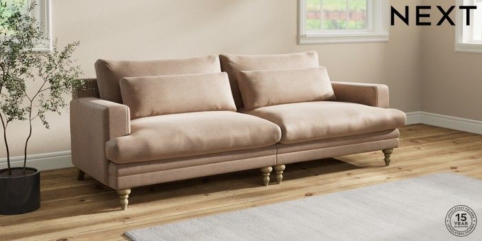 7.2.10 Hutton Deep Relaxed Sit 4 Seater Sofa Luxe Chenille Mid Natural Country Turned - Light | Made Click here to use our website with more accessibility support, for example screen readers