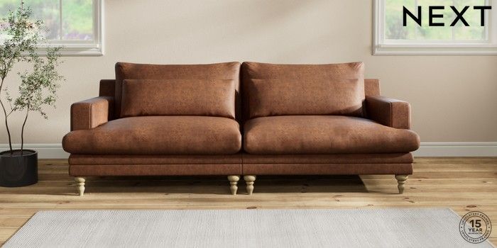 7.2.10 Hutton Deep Relaxed Sit 4 Seater Sofa Monza Faux Leather Easy Clean Chestnut Brown Country Turned - Light | Made Click here to use our website with more accessibility support, for example screen readers