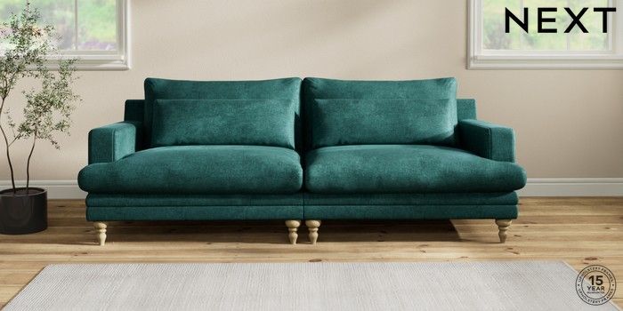 7.2.10 Hutton Deep Relaxed Sit 4 Seater Sofa Plush Chenille Dark Teal Green Country Turned - Light | Made Click here to use our website with more accessibility support, for example screen readers