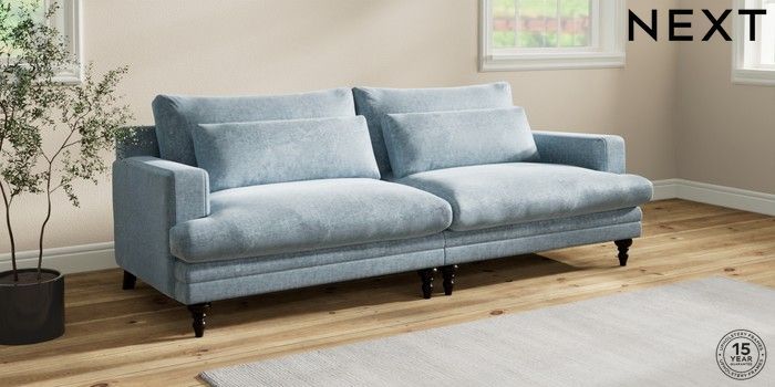 7.2.10 Hutton Deep Relaxed Sit 4 Seater Sofa Plush Chenille Light Blue Country Turned - Dark | Made Click here to use our website with more accessibility support, for example screen readers