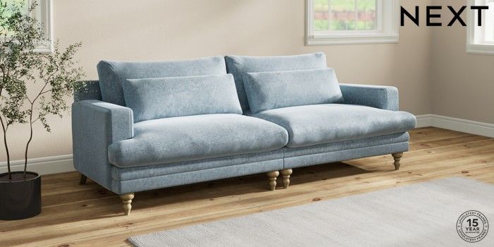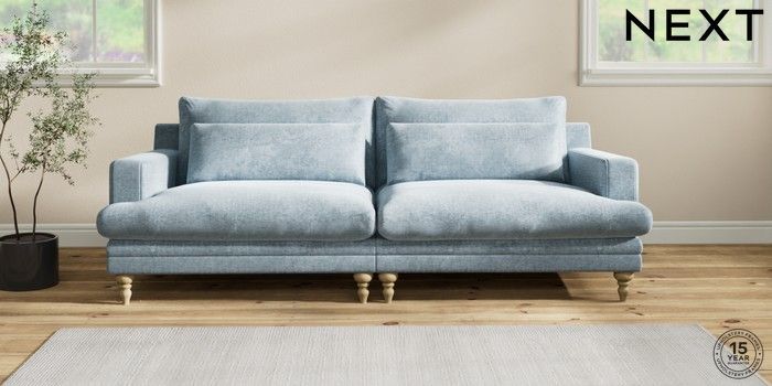 7.2.10 Hutton Deep Relaxed Sit 4 Seater Sofa Plush Chenille Light Blue Country Turned - Light | Made Click here to use our website with more accessibility support, for example screen readers