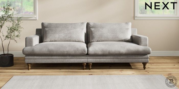 7.2.10 Hutton Deep Relaxed Sit 4 Seater Sofa Plush Chenille Light Grey Country Turned - Mid | Made Click here to use our website with more accessibility support, for example screen readers