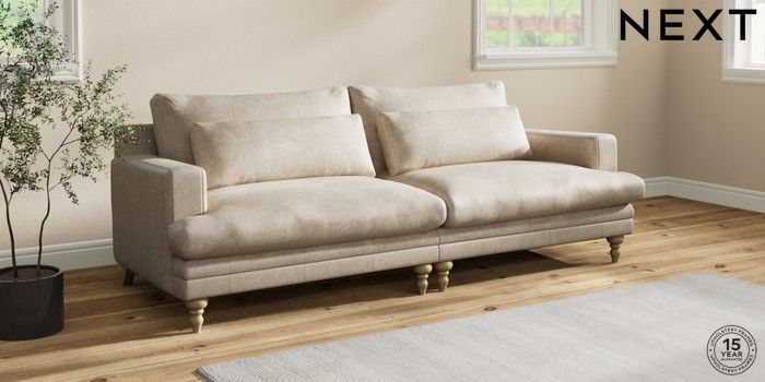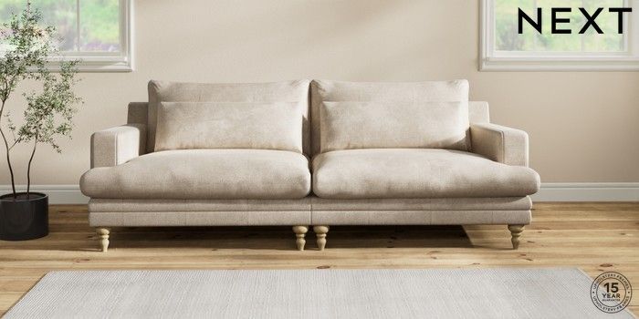 7.2.10 Hutton Deep Relaxed Sit 4 Seater Sofa Plush Chenille Light Natural Country Turned - Light | Made Click here to use our website with more accessibility support, for example screen readers