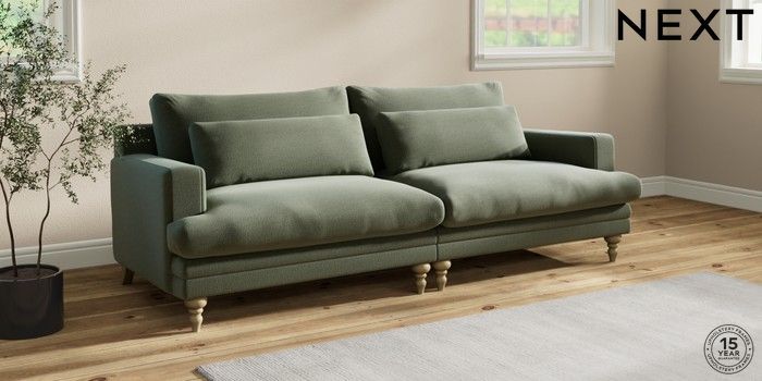 7.2.10 Hutton Deep Relaxed Sit 4 Seater Sofa Relaxed Linen Look Dark Green Country Turned - Light | Made Click here to use our website with more accessibility support, for example screen readers