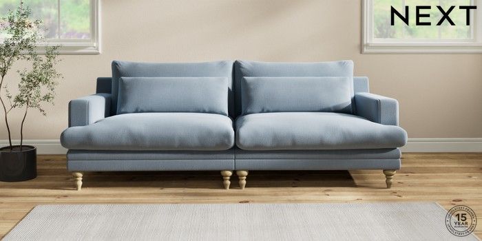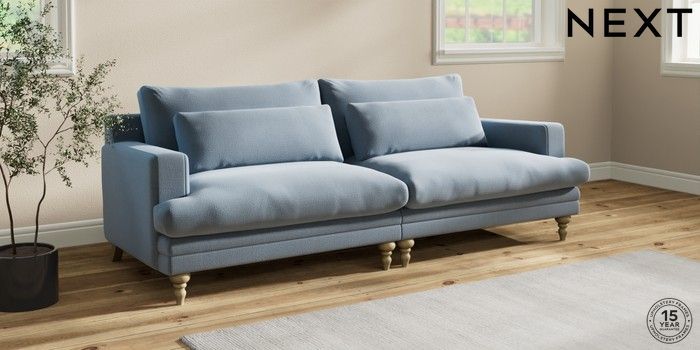 7.2.10 Hutton Deep Relaxed Sit 4 Seater Sofa Relaxed Linen Look Mid Blue Country Turned - Light | Made Click here to use our website with more accessibility support, for example screen readers