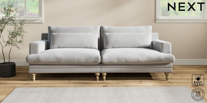 7.2.10 Hutton Deep Relaxed Sit 4 Seater Sofa Tweedy Blend Easy Clean Light Silver Grey Country Turned - Light | Made Click here to use our website with more accessibility support, for example screen readers
