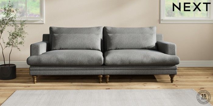 7.2.10 Hutton Deep Relaxed Sit 4 Seater Sofa Tweedy Chenille Dark Grey Country Turned - Mid | Made Click here to use our website with more accessibility support, for example screen readers