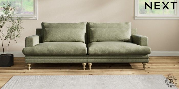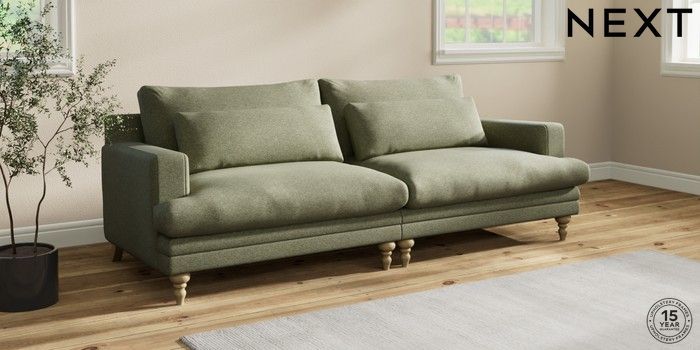 7.2.10 Hutton Deep Relaxed Sit 4 Seater Sofa Tweedy Chenille Mid Moss Green Country Turned - Light | Made Click here to use our website with more accessibility support, for example screen readers