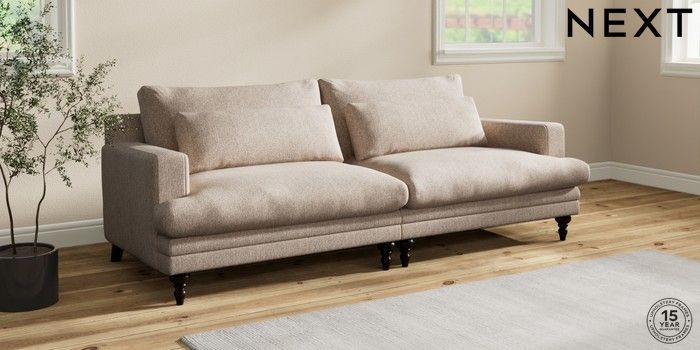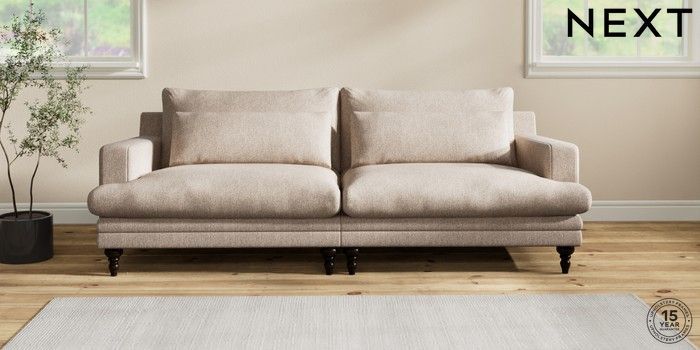 7.2.10 Hutton Deep Relaxed Sit 4 Seater Sofa Tweedy Chenille Mid Natural Country Turned - Dark | Made Click here to use our website with more accessibility support, for example screen readers