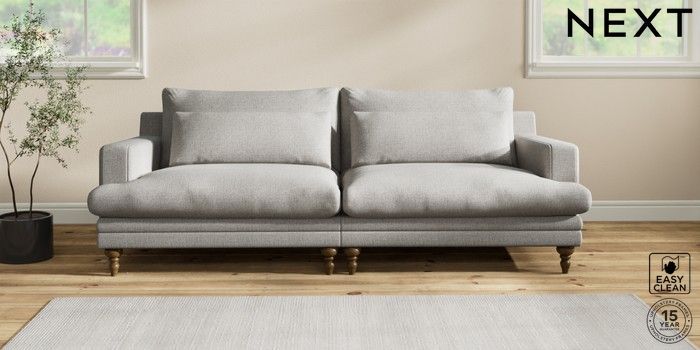 7.2.10 Hutton Deep Relaxed Sit 4 Seater Sofa Woven Chenille Easy Clean Light Grey Country Turned - Mid | Made Click here to use our website with more accessibility support, for example screen readers
