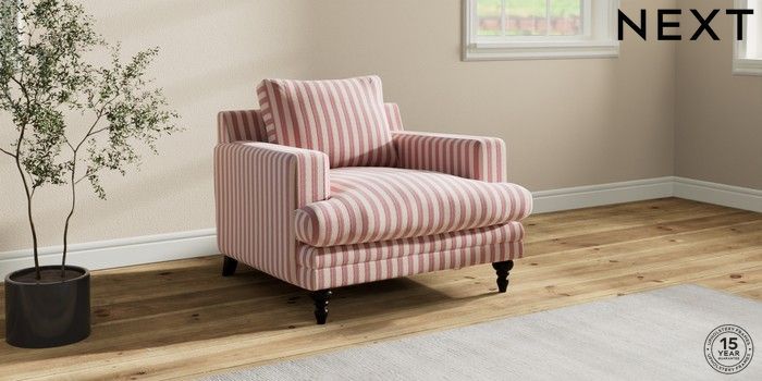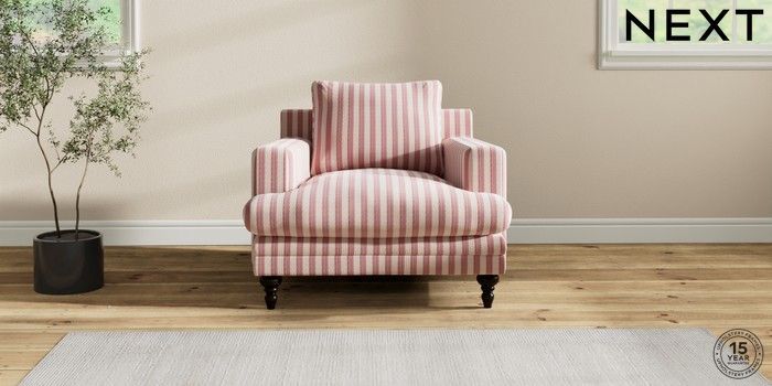 7.2.10 Hutton Deep Relaxed Sit Armchair Bold Chenille Stripe Dark Pink Country Turned - Dark | Made Click here to use our website with more accessibility support, for example screen readers