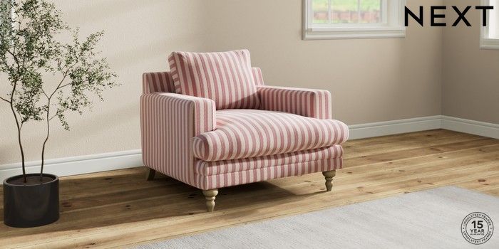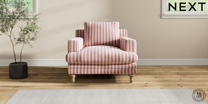 7.2.10 Hutton Deep Relaxed Sit Armchair Bold Chenille Stripe Dark Pink Country Turned - Light | Made Click here to use our website with more accessibility support, for example screen readers