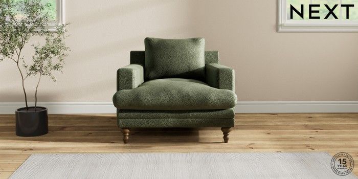7.2.10 Hutton Deep Relaxed Sit Armchair Boucle Chenille Dark Moss Green Country Turned - Mid | Made Click here to use our website with more accessibility support, for example screen readers