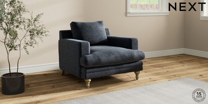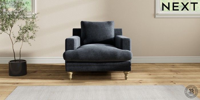 7.2.10 Hutton Deep Relaxed Sit Armchair Boucle Chenille Dark Slate Blue Country Turned - Light | Made Click here to use our website with more accessibility support, for example screen readers