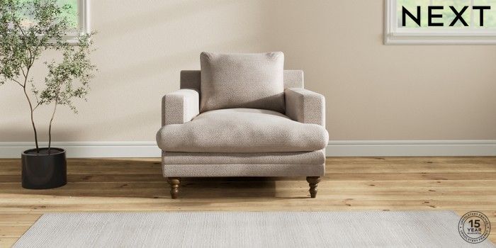 7.2.10 Hutton Deep Relaxed Sit Armchair Boucle Chenille Light Natural Country Turned - Mid | Made Click here to use our website with more accessibility support, for example screen readers
