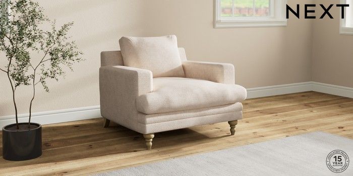 7.2.10 Hutton Deep Relaxed Sit Armchair Boucle Chenille Oyster Country Turned - Light | Made Click here to use our website with more accessibility support, for example screen readers