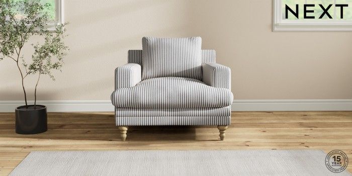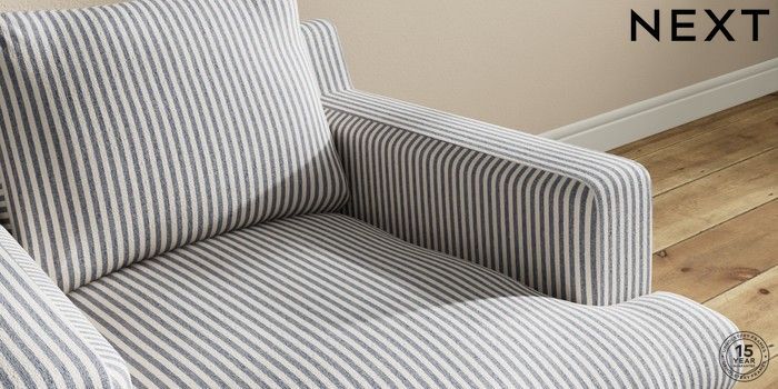 7.2.10 Hutton Deep Relaxed Sit Armchair Chenille Stripe Slate Blue Country Turned - Light | Made Click here to use our website with more accessibility support, for example screen readers