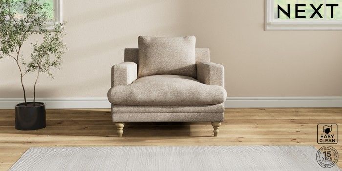 7.2.10 Hutton Deep Relaxed Sit Armchair Chunky Boucle Easy Clean Mid Natural Country Turned - Light | Made Click here to use our website with more accessibility support, for example screen readers