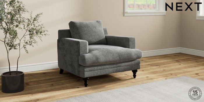 7.2.10 Hutton Deep Relaxed Sit Armchair Chunky Chenille Dark Grey Country Turned - Dark | Made Click here to use our website with more accessibility support, for example screen readers