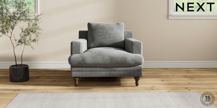 7.2.10 Hutton Deep Relaxed Sit Armchair Chunky Chenille Dark Grey Country Turned - Mid | Made Click here to use our website with more accessibility support, for example screen readers