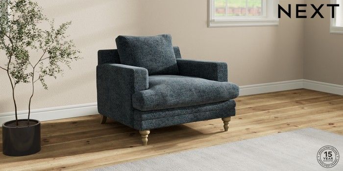 7.2.10 Hutton Deep Relaxed Sit Armchair Chunky Chenille Dark Navy Blue Country Turned - Light | Made Click here to use our website with more accessibility support, for example screen readers