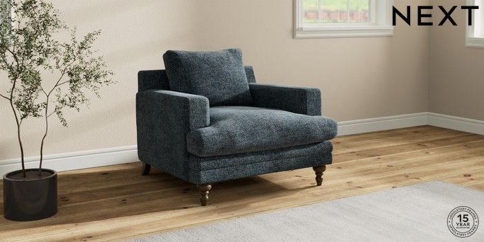 7.2.10 Hutton Deep Relaxed Sit Armchair Chunky Chenille Dark Navy Blue Country Turned - Mid | Made Click here to use our website with more accessibility support, for example screen readers