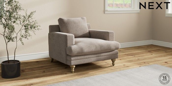7.2.10 Hutton Deep Relaxed Sit Armchair Chunky Chenille Light Dove Country Turned - Light | Made Click here to use our website with more accessibility support, for example screen readers