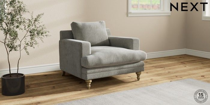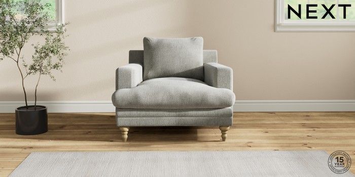 7.2.10 Hutton Deep Relaxed Sit Armchair Chunky Chenille Light Grey Country Turned - Light | Made Click here to use our website with more accessibility support, for example screen readers