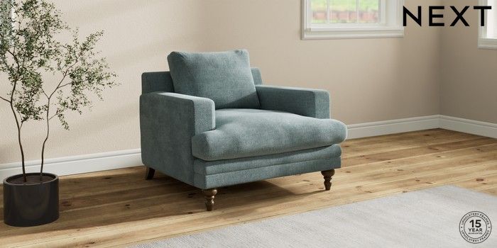 7.2.10 Hutton Deep Relaxed Sit Armchair Chunky Chenille Light Teal Green Country Turned - Mid | Made Click here to use our website with more accessibility support, for example screen readers