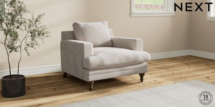 7.2.10 Hutton Deep Relaxed Sit Armchair Chunky Chenille Oyster Country Turned - Mid | Made Click here to use our website with more accessibility support, for example screen readers