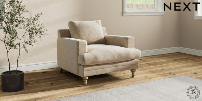 7.2.10 Hutton Deep Relaxed Sit Armchair Chunky Weave Cream Country Turned - Light | Made Click here to use our website with more accessibility support, for example screen readers