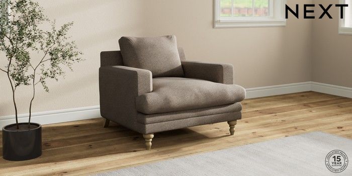 7.2.10 Hutton Deep Relaxed Sit Armchair Chunky Weave Dark Natural Country Turned - Light | Made Click here to use our website with more accessibility support, for example screen readers