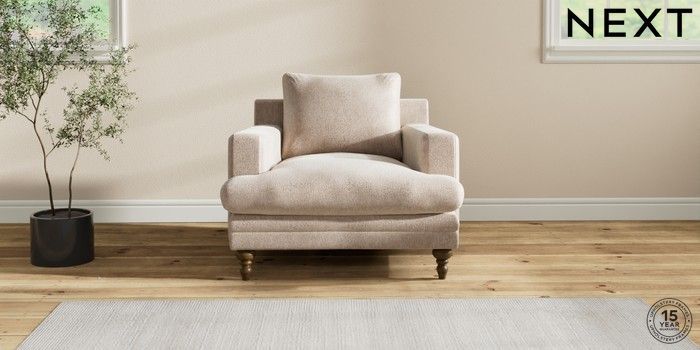 7.2.10 Hutton Deep Relaxed Sit Armchair Cotswold Chenille Light Natural Country Turned - Mid | Made Click here to use our website with more accessibility support, for example screen readers