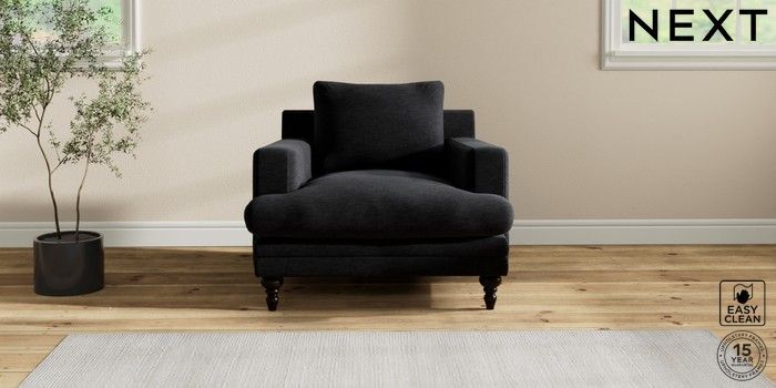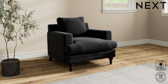 7.2.10 Hutton Deep Relaxed Sit Armchair Fine Chenille Easy Clean Black Country Turned - Dark | Made Click here to use our website with more accessibility support, for example screen readers