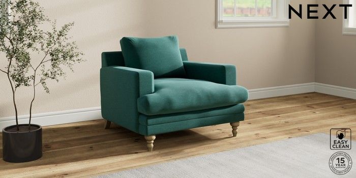7.2.10 Hutton Deep Relaxed Sit Armchair Fine Chenille Easy Clean Dark Juniper Green Country Turned - Light | Made Click here to use our website with more accessibility support, for example screen readers