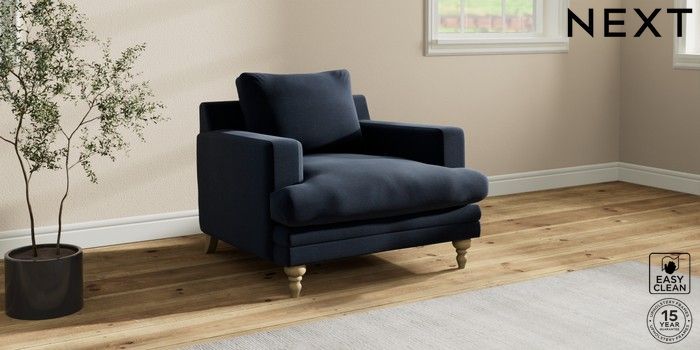 7.2.10 Hutton Deep Relaxed Sit Armchair Fine Chenille Easy Clean Dark Navy Blue Country Turned - Light | Made Click here to use our website with more accessibility support, for example screen readers