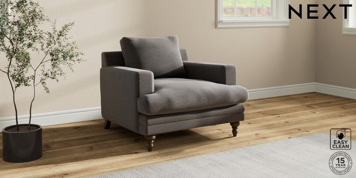 7.2.10 Hutton Deep Relaxed Sit Armchair Fine Chenille Easy Clean Dark Smoke Grey Country Turned - Mid | Made Click here to use our website with more accessibility support, for example screen readers